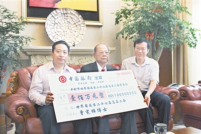 5月24日,曾憲梓博士捐贈(zèng)100萬(wàn)元港幣支持開封舉辦世界客屬第27屆懇親大會(huì)。